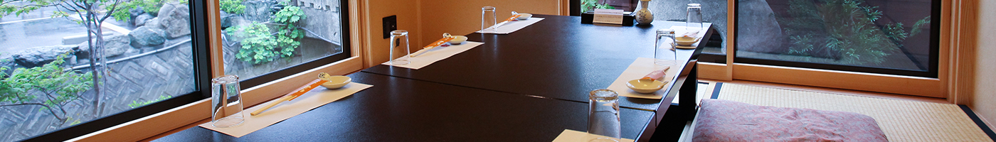 - お部屋は木の温もりある「数寄屋風個室」、足元を楽にして頂ける「イス、テーブル席」など、人数・目的に合わせてご用意させて頂きます。店舗案内ページをご覧ください。